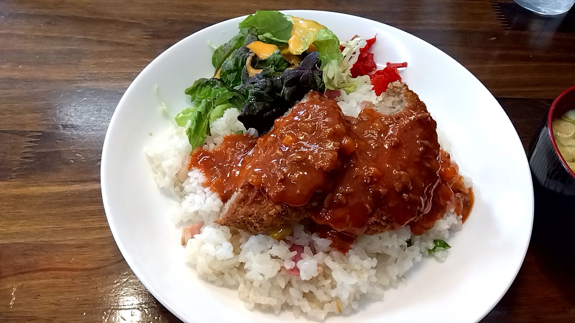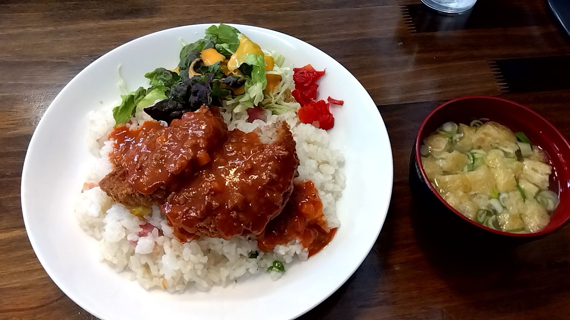 何時もはアイスコーヒーかメロンソーダ、今回は初めて味噌汁をチョイス。