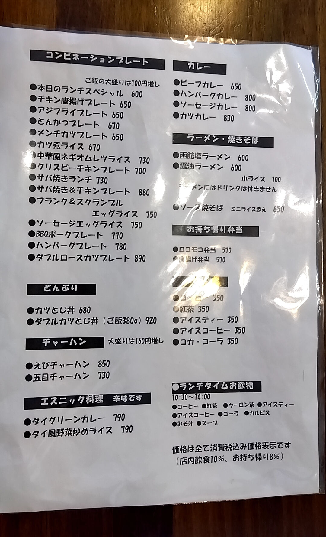 前回と比べて全体的に50円の値上げ、それでも全然安価。