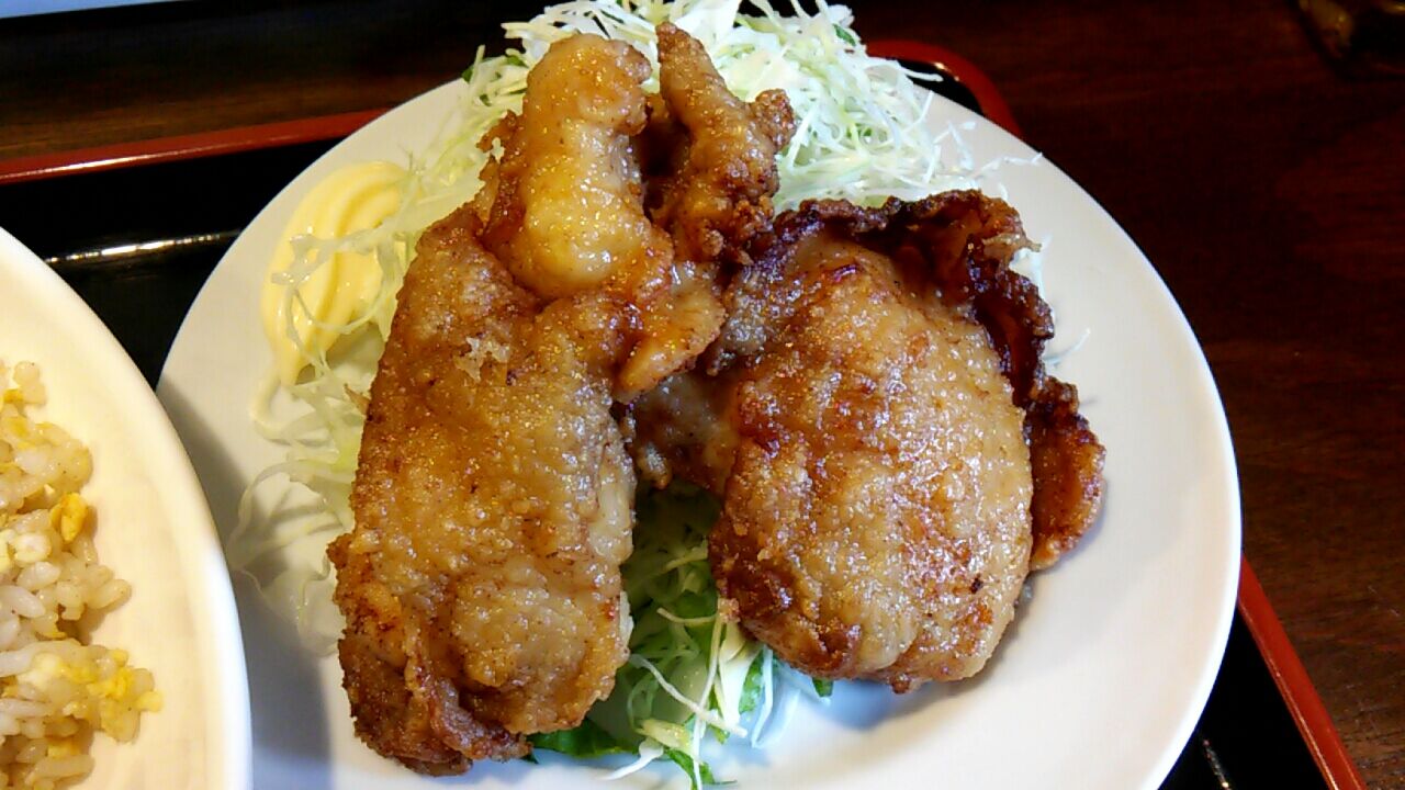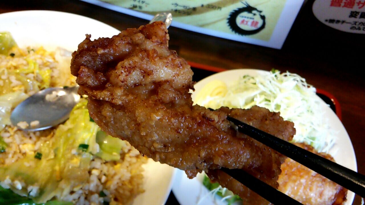 ややシットリ感のあるデカい唐揚げが2個だにゃ(=^・^=)