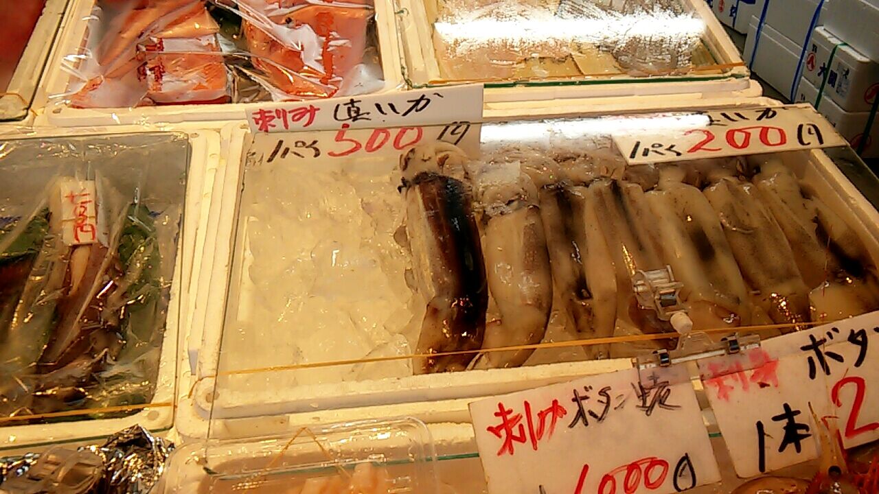 色々な海産物が売られておりましたにゃ(=^・^=)