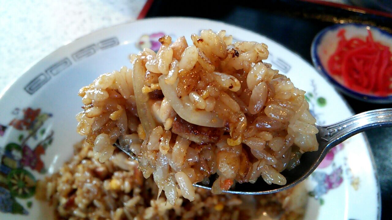 炒飯もかなり濃い色のビジュアルだったぬよ。