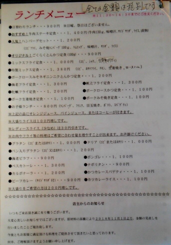 まな様的函館洋食店」ごくらく亭で食べた日替わりランチの評価は・・・