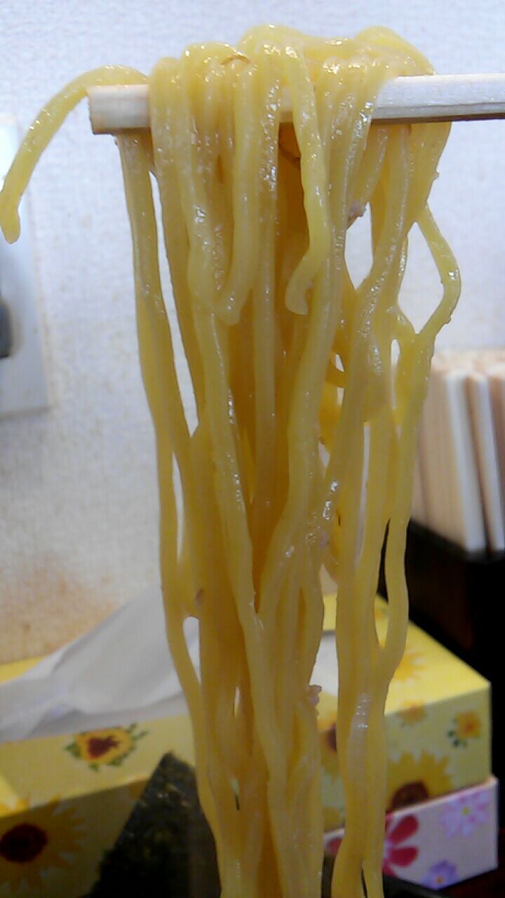 麺は中太の縮れ、茹で加減はやや硬めでしたにゃよ。