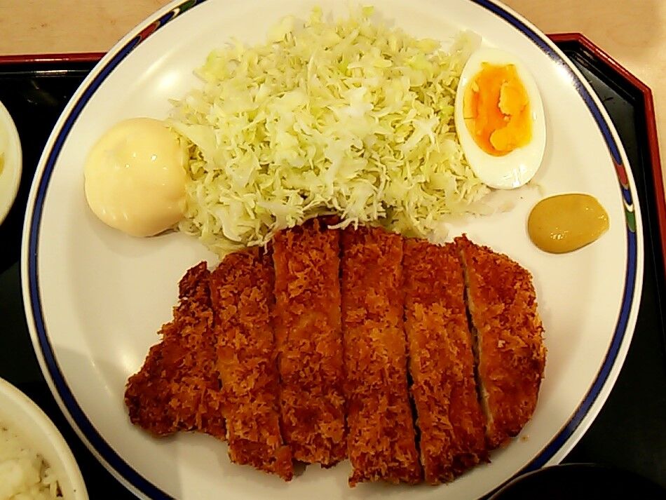 貼り紙より小さく見えますが、皿がデカいのでそれなりに大きいチキンカツだったぬん🌸