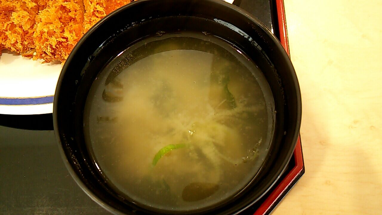 ご飯は少なく見えますが器が大きいので適量、味噌汁の具はネギとワカメでしたにゃ。