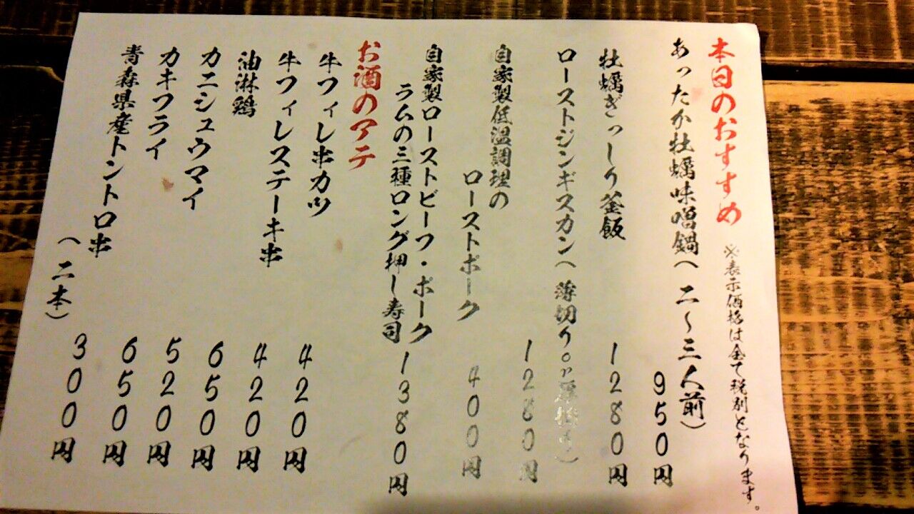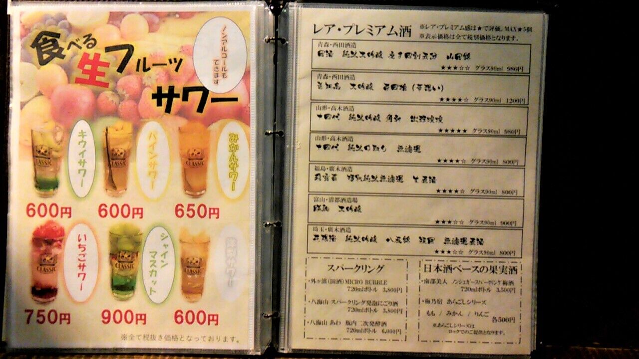 日本酒200円 焼酎150円 つまみは100円からと激安だぬ🌸