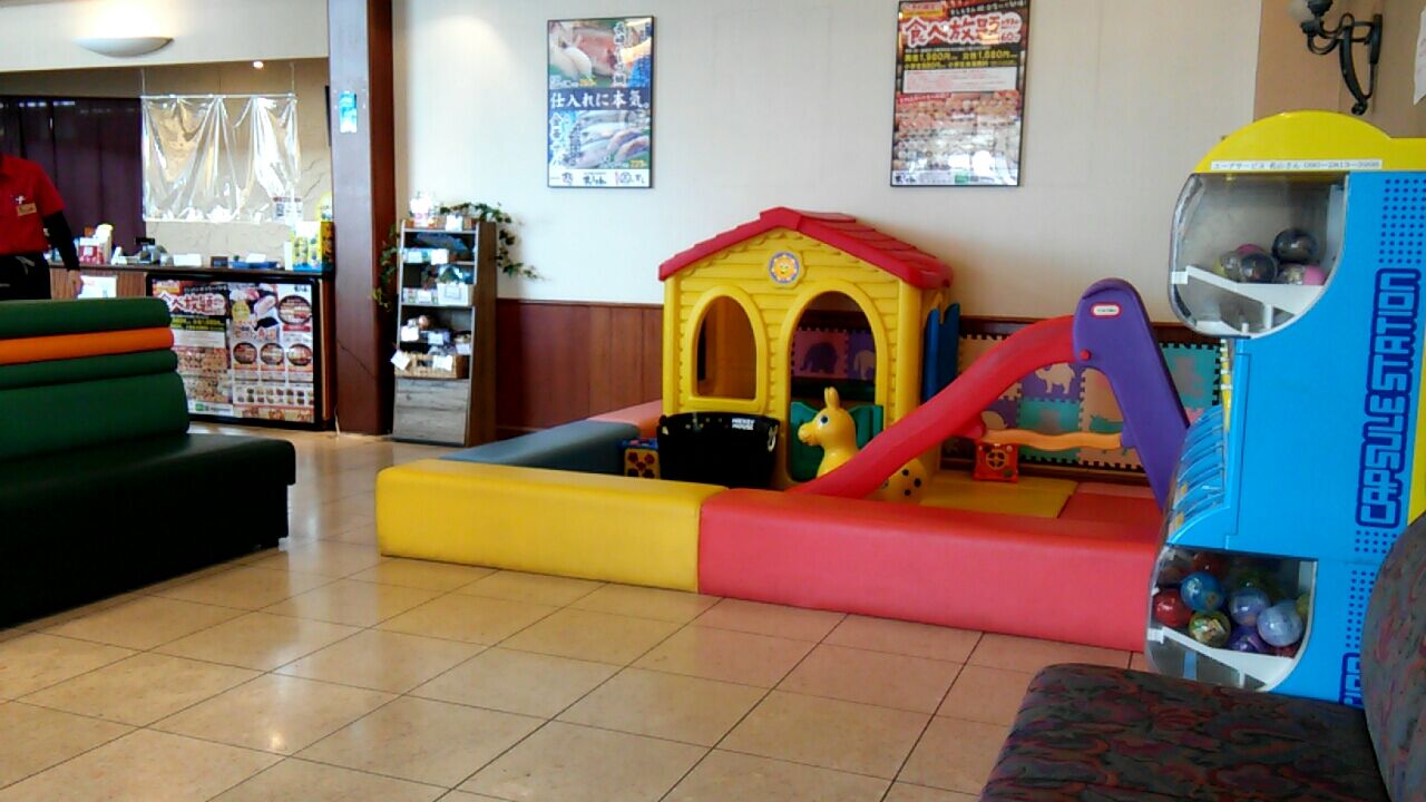 私も名前を書いて店内の椅子に掛け待機、キッズスペースがあったにゃよ(=^・^=)