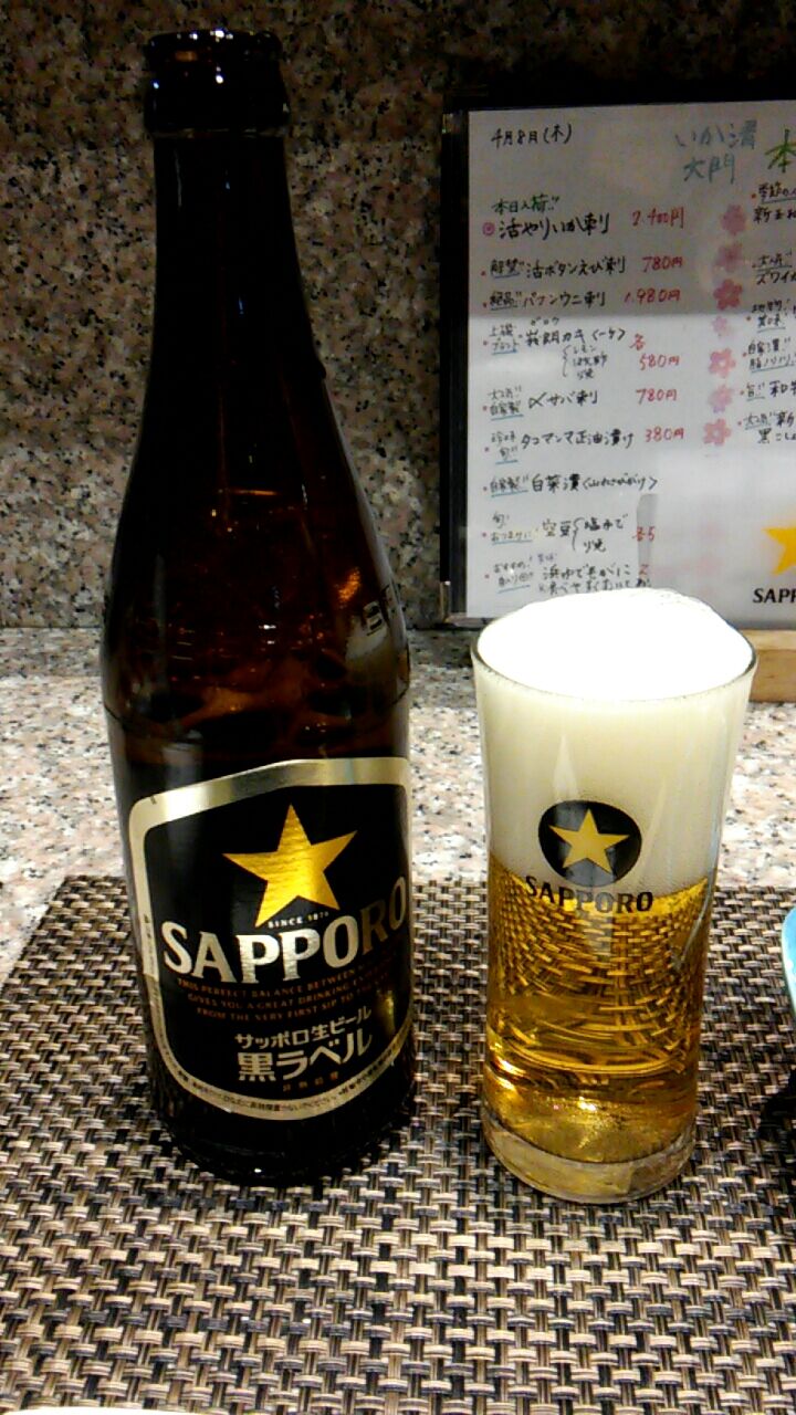 瓶ビール(札幌黒ラベル中瓶) 500円