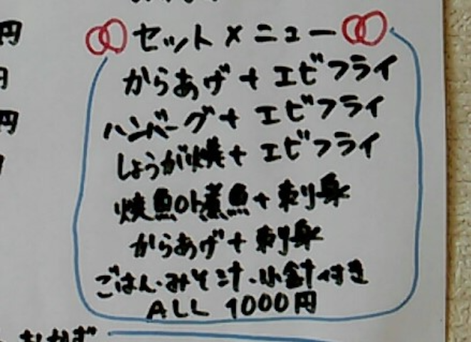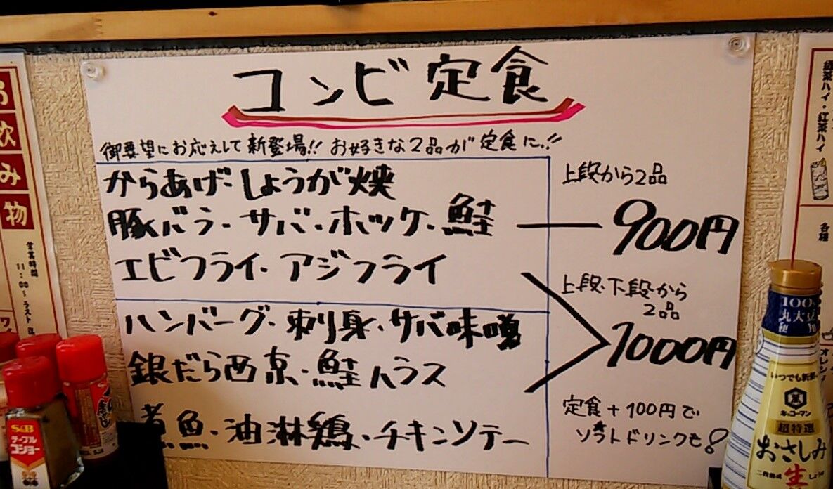 因みに1000円のセットメニューと内容が被ってコンビ定食では900円になる場合は。