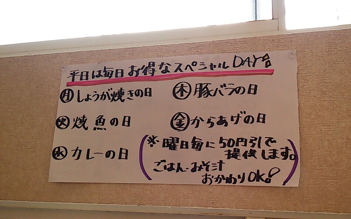 平日は日替わりでお得になる定食があるんだぬん(=^・^=)